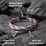 • Crafted from 4mm / 0,15" Striped White Nylon Rope.